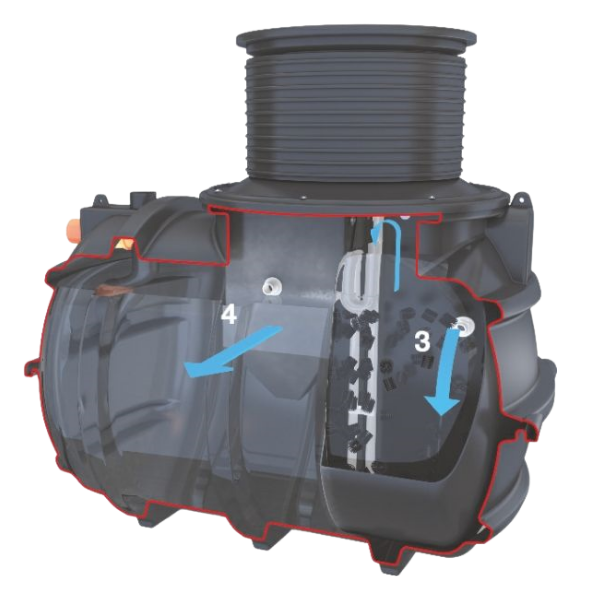 BIOFICIENT to nowoczesna oczyszczalnia biologiczna pracująca w technologii złóż fluidalnych z podwójną strefą tlenową, wyposażony w osadnik wstępny. Oczyszczalnia przydomowa która posiada dwie strefy tlenowe (biologiczne) z układem napowietrzającym, osadnik wtórny , układ zawracania osadu, zintegrowaną komorą systemu napowietrzającego ze sprężarką, jeden właz z pokrywą zamykaną na zamki.